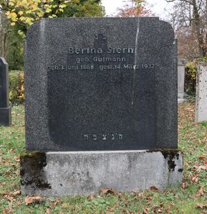 | Name | Bertha Stern, geb. Gutmann (lt. Sterberegister u. Grabstein; abweichend: Babette Stern, geb. Gutmann, lt.Sterbeurkunde) |